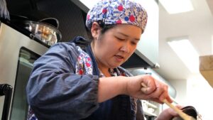 賀茂川が流れる豊かな自然とともに育った澤さんは、父に教わった“鮎の友釣り”に夢中になりました。鮎釣りで生きていこうと決めたのは23歳の時。以来26年間、鮎釣り一本で生活しています。「収入はサラリーマンの半分ぐらい。でも、好きだからやってる」と話す澤さん。離婚し、今は一人暮らしですが、『鮎菜』と名付けた一人娘とは今も一緒に釣りを楽しんでいます。