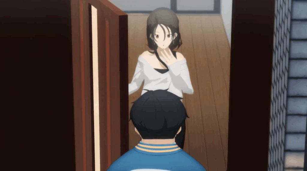 祐樹が玄関のインターホンを鳴らすと、「はーい」と扉を開けた従姉・雪子(CV:近藤玲奈)は息をのむ。