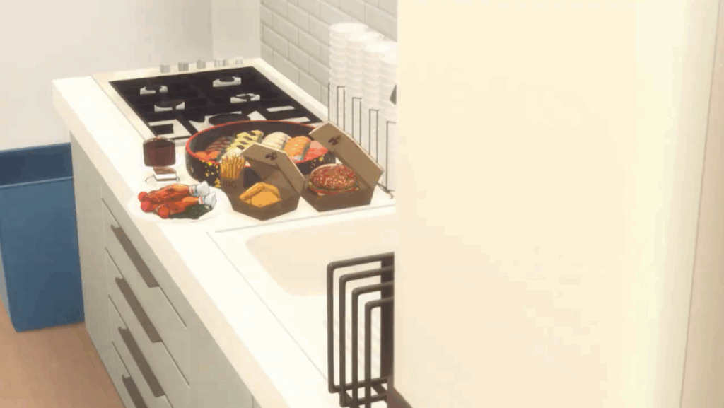 すると、「ちゃんとご馳走はあるから。あっち食べなよ」と華実。キッチンには寿司の大皿やハンバーガー、チキンなど祐樹の好きなご馳走が並んでいる。