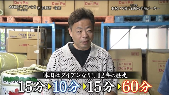 いろんな菰樽で鏡開きを楽しむダイアンのロケの様子は、9月19日に放送されたバラエティ番組『本日はダイアンなり!シーズン2』(ABCテレビ)で公開された。