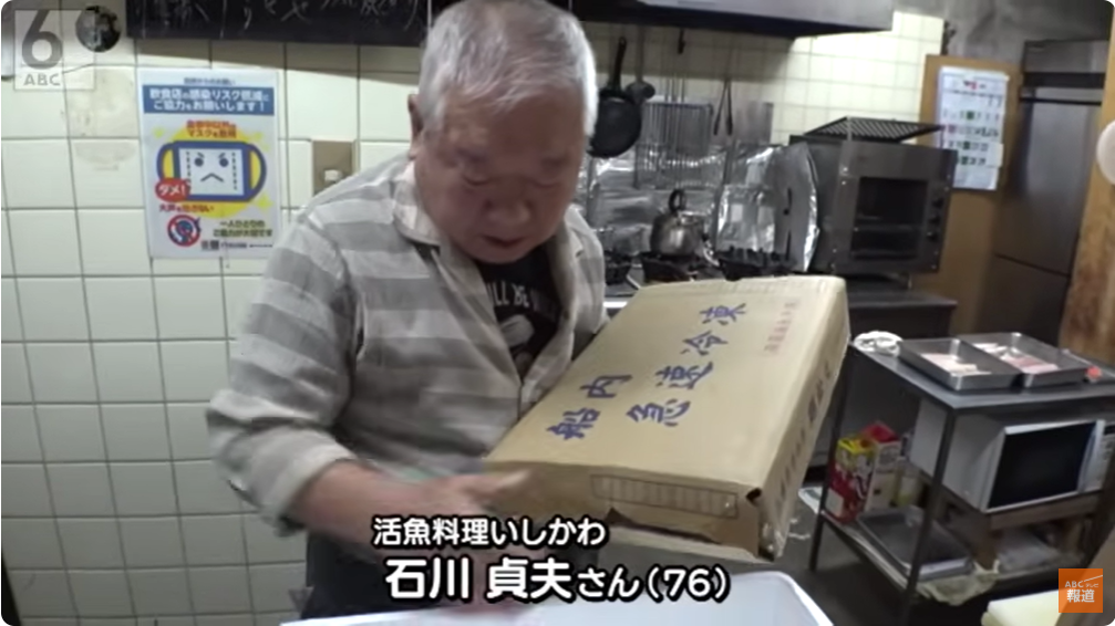 やって来たのはJR玉造駅から徒歩10分の「活魚料理 いしかわ」。朝8時過ぎ、開店前のお店で今日の仕込みを始めるのは、店主の石川貞夫さん(76)です。名物の「ホタルイカの石焼き」に使うホタルイカの準備をしたり、お昼の定食で出す魚を焼いたり。「一手間やけど、みんな喜ぶやろう思うて」とサバの小骨も丁寧に取り除きます。