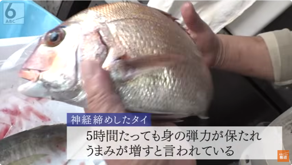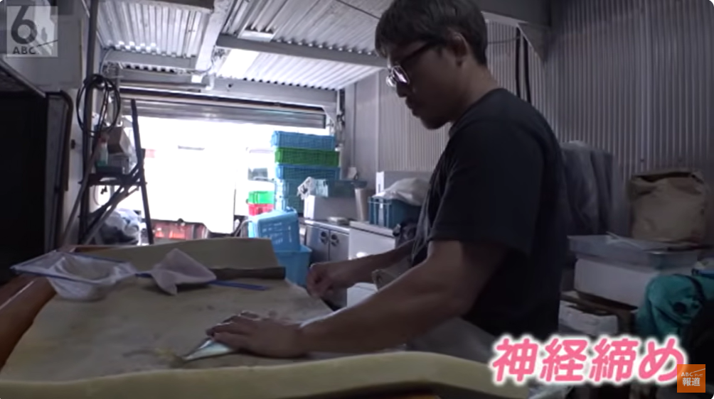 長男の真太郎さん(41)は魚の仲買人。和歌山の加太で1本釣りした魚を大阪市内の市場に卸す仕事をしています。今朝獲れたアジを、背骨近くの神経にワイヤーを通すプロの技「神経締め」で締める真太郎さん。こうすると5〜6時間経っても身が硬直せず、旨みが増すそう。この魚は「いしかわ」でも食べられます。
