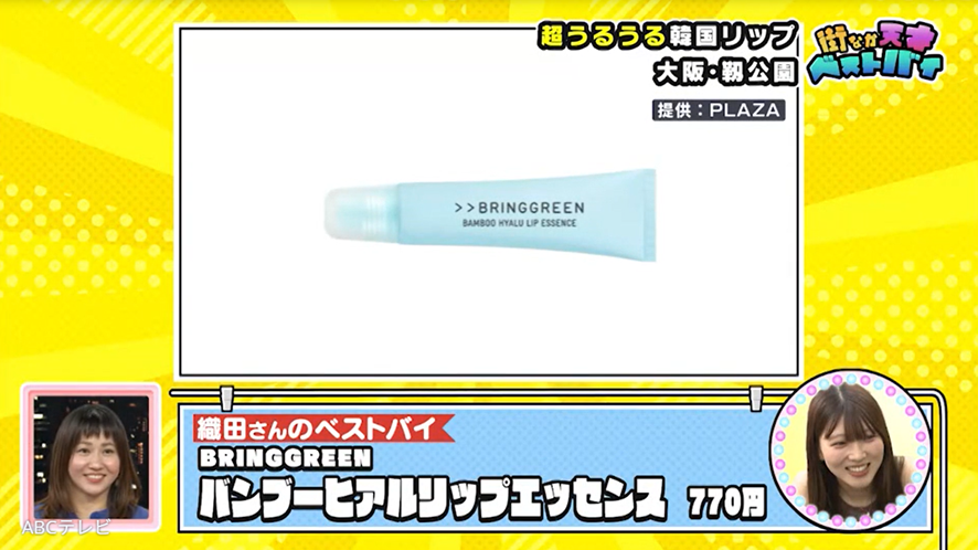 女子2人のうち1人のベストバイは、韓国のスキンケアブランド・BRINGGREEN(ブリングリーン)のバンブーヒアルリップエッセンス。低刺激かつ油っぽくない質感のリップで、寝る前の唇のケアに最適なんだとか。「唇がめちゃくちゃ乾燥する」のが悩みで「いろんなリップを試してきた」という彼女は、このバンブーヒアルリップエッセンスを使ってから唇が「うるッとします」とのこと!