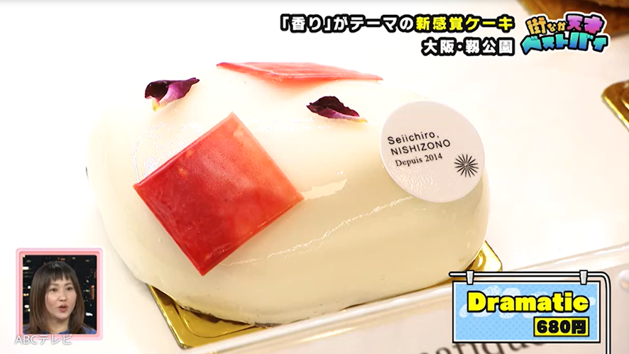 Seiichiro,NISHIZONOには、香りがコンセプトの美しいスイーツが満載。オーナーパティシエいわく、「食べたときに味ってすぐ忘れるんですけど、香りって覚えている」とのことで、人々の記憶に残るスイーツづくりを目指しています。彼のおすすめは、バラと栗を組み合わせたスイーツ・Dramatic(ドラマティック)。試食した天才ピアニストは、「香りがブワ~ッときて優雅な気持ち!」「マリーアントワネットな気分やな~!」と驚きました。