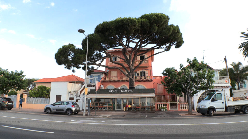今回のスペシャルの物件は、南フランスのコート・ダジュールにある、地中海に面した海辺のリゾート地カーニュ・シュル・メールのフレンチレストラン。依頼者Kさん(46歳)は妻(34歳)と、日本人夫婦2人で営んでいる。この物件最大の問題は、増築した平屋部分に生える、樹齢100年を超える、巨大な松の木。太い幹は天井から屋根を貫通して、枝葉を広げている。その巨木ゆえに、幹と屋根の隙間からは大量の雨漏りが発生し、客席や床がびしょ濡れに。さらに根が床下を通るため、床に亀裂が入り始め、このままでは店を利用するお客様に迷惑が掛かってしまう。そこで依頼者は番組に相談。問題の解決と共に、匠に、店内に“和”を感じさせる「坪庭のような庭」を作ってほしいと依頼してきた。