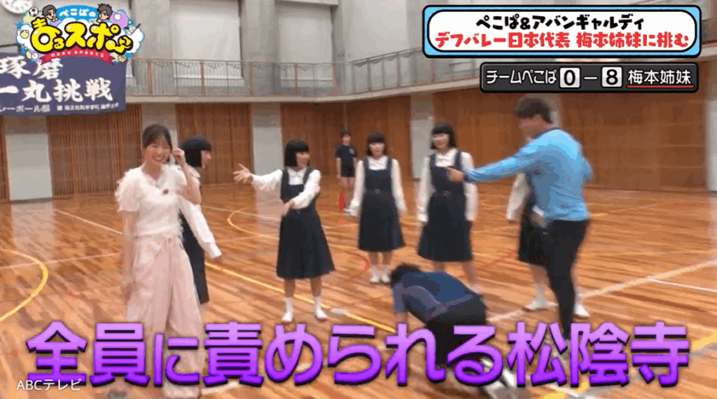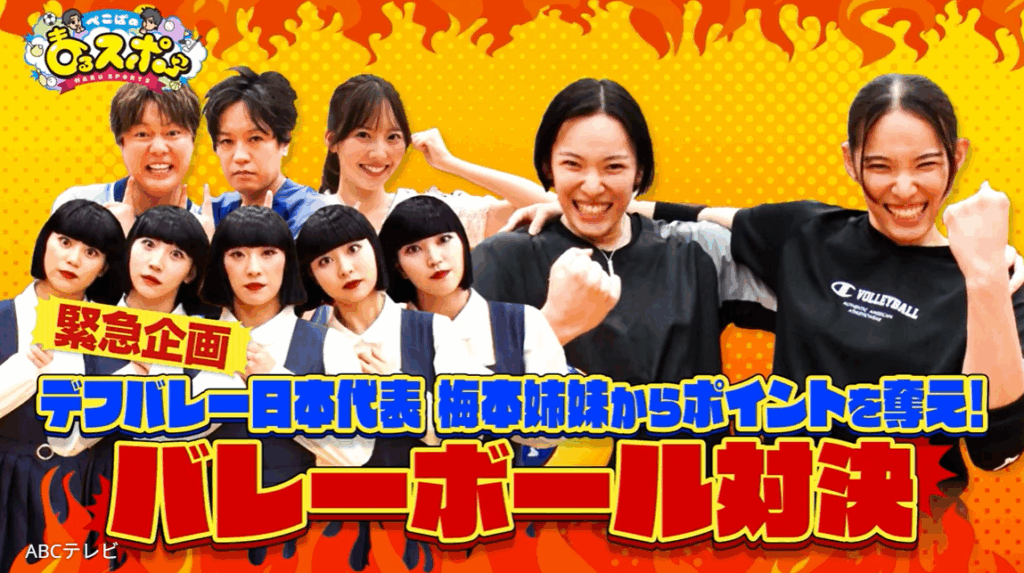 さらに新生まるスポチームは、東京2025デフリンピック(11月15日から開催)デフバレー女子日本代表で双子の梅本綾也華選手と沙也華選手へ無謀にも勝負を挑んだ! 新生まるスポチームが、あの手この手で梅本姉妹に食らいついた笑えて熱い試合VTRは、10月5日に放送された『ぺこぱのまるスポ』で公開された。