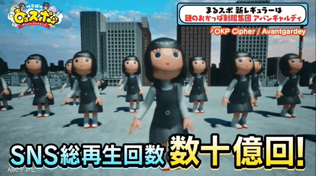 ちなみに、『ぺこぱのまるスポ』の新レギュラーメンバーは、世界で活躍する17人組ダンスチーム・アバンギャルディに決定した。2022年に発足したアバンギャルディは、学生服とおかっぱヘアが特徴的で、ダンスが超キレッキレ! 代表曲『OKP Cipher』のMVは、YouTube再生回数が200万回を超え、SNS総再生回数はなんと数十億回を誇る。
