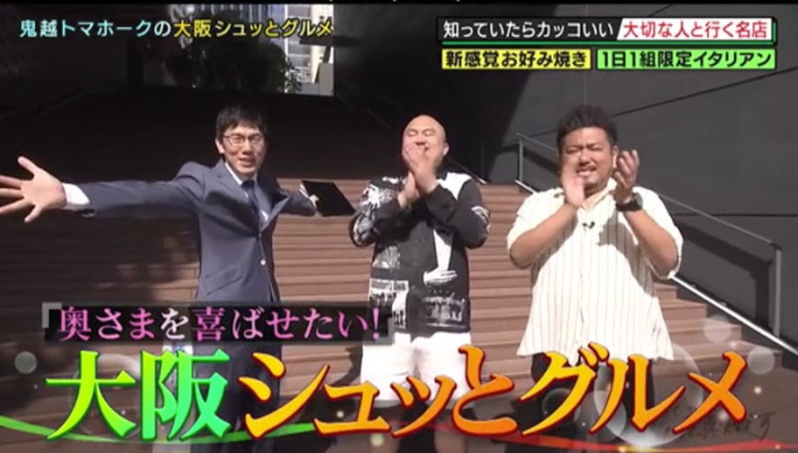 「奥さまを喜ばせたい!大阪シュッとグルメ!」では、大阪のコテコテイメージを覆すオシャレ=シュッとしたお店に鬼越トマホークをご案内! 元アイドルのキュートな奥さまとラブラブの良ちゃん。大阪で仕事があるとき、旅行がてら奥さまも一緒に来阪し、食事に出かけることもあるという。そこで、奥さまが喜ぶこと間違いなしのシュッとしたグルメ「シュッとグルメ」のお店を厳選。浅越ゴエのナビゲートで、鬼越がその極上メニューを味わい尽くす!