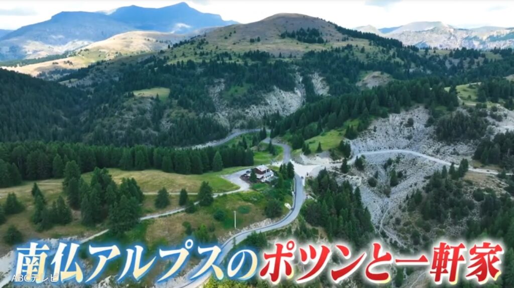 目的の「ポツンと一軒家」は、コート・ダジュール海沿いの日本人シェフの店から80キロ離れた、イタリアとの国境に近い標高1700メートルのアルプス山中。切り立った岩壁に沿って進む山道には、珍しい紫色の岩肌も見られる。