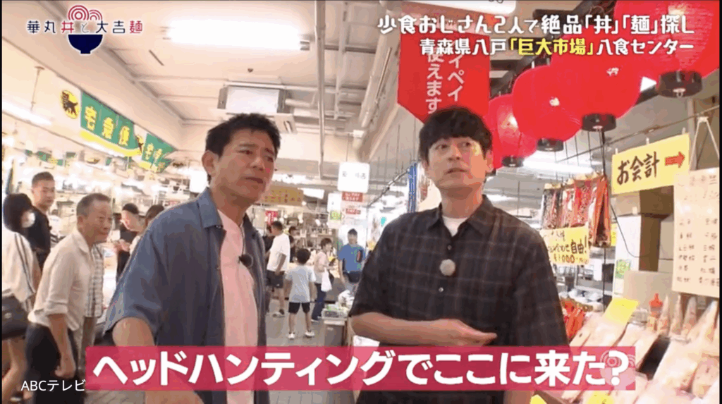 少食おじさんの博多華丸・大吉が、ただただ食べたい丼か麺を探し求める街ブラ番組『華丸丼と大吉麺』(ABCテレビ)。東北ロケの第2回は青森県八戸市へ。「八戸のものならなんでも揃う」「食のテーマパーク」と言われる巨大市場「八食センター」で丼麺を探していた華大が、スカウト必死の逸材に出会ってしまった。