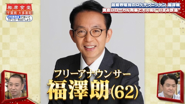 あの有名男性フリーアナウンサーとは、「ジャストミート!」という決めゼリフでお馴染みの福澤朗。局アナ時代は熱い実況で視聴者を沸かせ、『ズームイン!!朝!』『アメリカ横断ウルトラクイズ』『エンタの神様』といった⼈気番組を⽀えた。