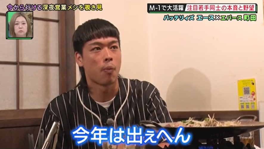 そんなエースが、『M-1グランプリ2024』4位で芸歴11年目のエバース・町田和樹と、真夜中に大阪で本音を語った。『M-1グランプリ』の話題になると、エースは「今年は出ぇへん」と断言。相方の寺家と話し合って決めたという。