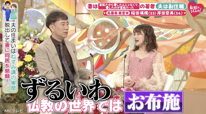 10月12日(日)に放送された『新婚さんいらっしゃい!』は、言葉を紡ぐ作家ならではの妻の軽快トークと、お坊さんらしからぬ夫の言動に、MC・藤井隆のツッコミが冴え渡る爆笑回! 見逃した方は、ぜひ無料配信動画サービスTVer で“笑門来福”!
