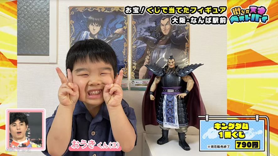 夫婦のベストバイは、アニメ『キングダム』の人気キャラクターである大将軍・王騎(おうき)のフィギュア。王騎将軍は、実写映画版を俳優の大沢たかおが演じたことでも有名です。ちなみに3歳の息子さんの名前は、王騎将軍が由来なのだそう。夫婦が1番くじでゲットしたアニメ版王騎将軍のフィギュアは、大きさが30センチほどあり、自宅では「守り神的な存在」になっているそうです。