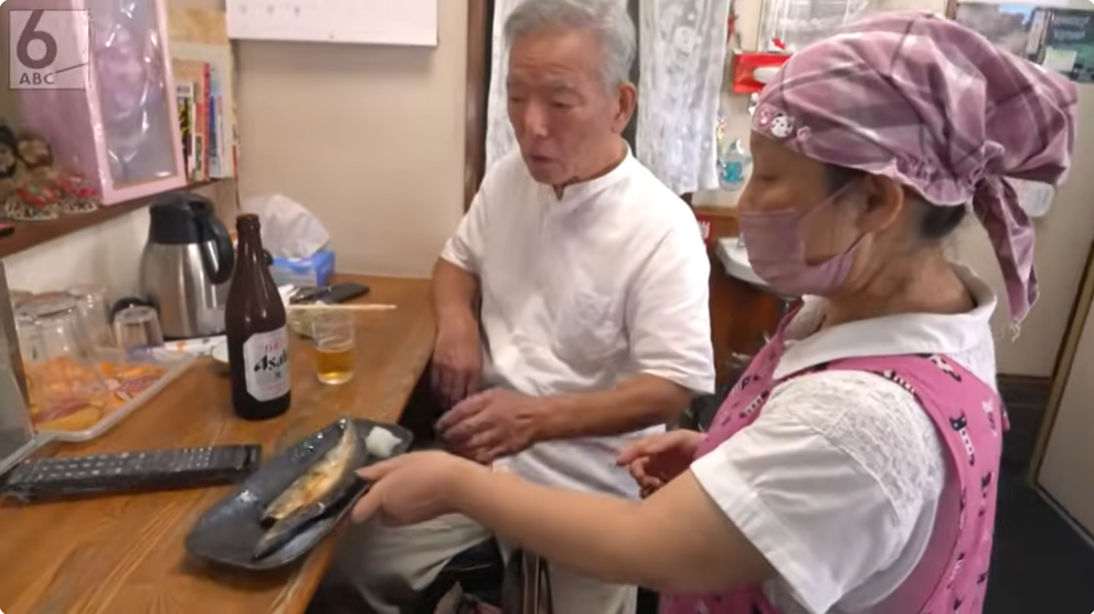 日は落ちて午後7時、夜の店内もほぼ満席。そんななか、2か月前に近所に越してきたというご夫婦が夕食を楽しんでいました。「ここのあじフライが一番好き」という奥さまは、外出時はいつも車いすで、車での送り迎えが必要。姉妹はわざわざ店の外まで見に行ってくれ、迎えの車が到着することを教えてくれるそうで「すごく気を遣ってくれる」と感激しきりです。