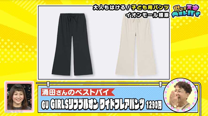 「お母さんとぽかぽか温泉で一緒になります~!」とますみに話しかけてきた女性のベストバイは、今はいているGUのワイドフレアパンツです。実はキッズアイテムですが、小柄で婦人服が合わない彼女のように、購入する大人はたくさん。裾上げ不要で、ウエストがゴム製のためはきやすく、“ますみママの風呂友”は「2枚買いしました!」とのこと。