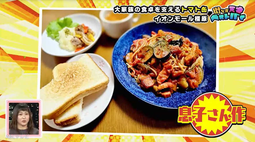 7人の子どもを育てる女性のベストバイは、カルディコーヒーファームのトマト缶。販売個数が年間700万個を超える、カルディ人気ナンバーワン商品です。女性はこのトマト缶を「パスタソースを作るとき、あとチキンライス、煮込むとかでもいいし、ミネストローネとか」で使うとのこと。彼女から高校2年生の息子は料理を習い、とってもおいしそうな具だくさんトマトパスタを作ったそうです!