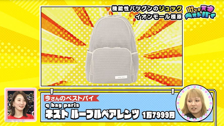 出産で東京から帰郷中の女性のベストバイは、ママの間で話題になっているパリのバッグブランド・q bag paris(キューバッグパリ)のリュックサック。育児世代に聞き込みを重ねて開発されたリュックサックで、女性いわく大容量かつ「すっごく軽くて洗濯機で丸洗いできる」ため、とっても重宝しているそうです。