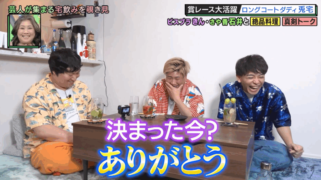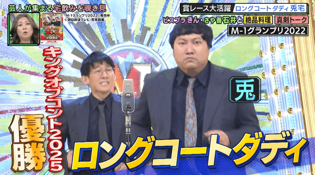 兎は、きんと石井から特別なアドバイスをもらったわけではないが、自宅でリラックスしながら真剣に話を聞いてもらえたことで、いろいろと吹っ切れたのだろう。気の置けない仲間たちとのこの本音トークもあって、ロングコートダディはようやく賞レースで優勝できたのだった。なお、兎たちの宅飲みVTRは、海原やすよ ともこが司会を務めるバラエティ番組『やすとものいたって真剣です』(ABCテレビ)10月23日放送回で公開された。