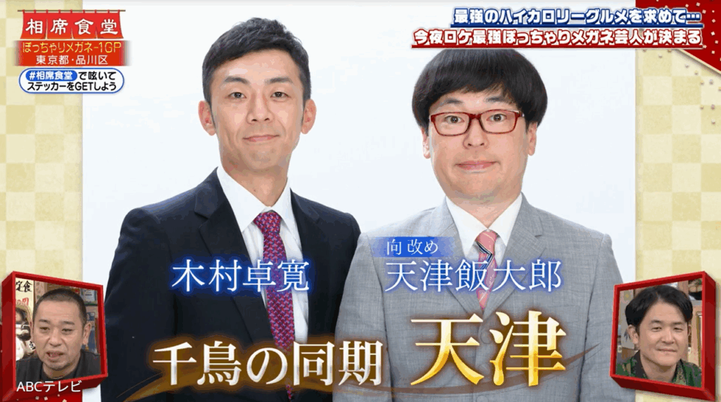 千鳥の同期とは、「向清太朗」から改名した天津飯大郎(天津)。『相席食堂』の新ロケ頂上決戦「ぽっちゃりメガネ-1グランプリ」にエントリーした飯大郎だが、その体は以前と比べると非常にほっそりしている。実は彼は、「このロケが決まる前までダイエットしていて、11キロ痩せてしまった」のだ。