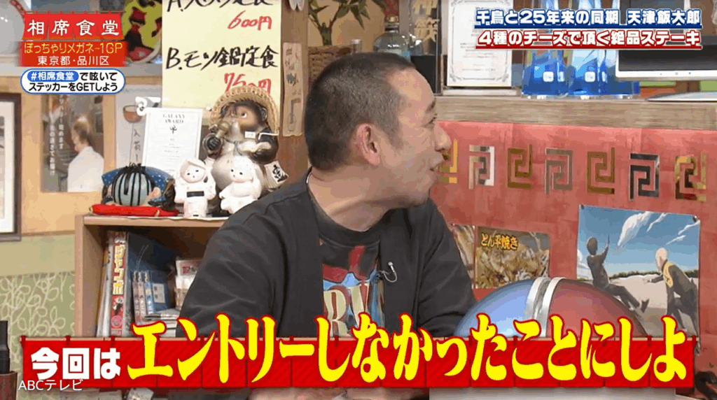 【TVer】千鳥がネットで炎上!? 彼らの判定は正しかったのか? 同期芸人・天津飯大郎は『相席食堂』ロケ賞レース初失格後、実はウケ狙いであるものを自腹購入していた!