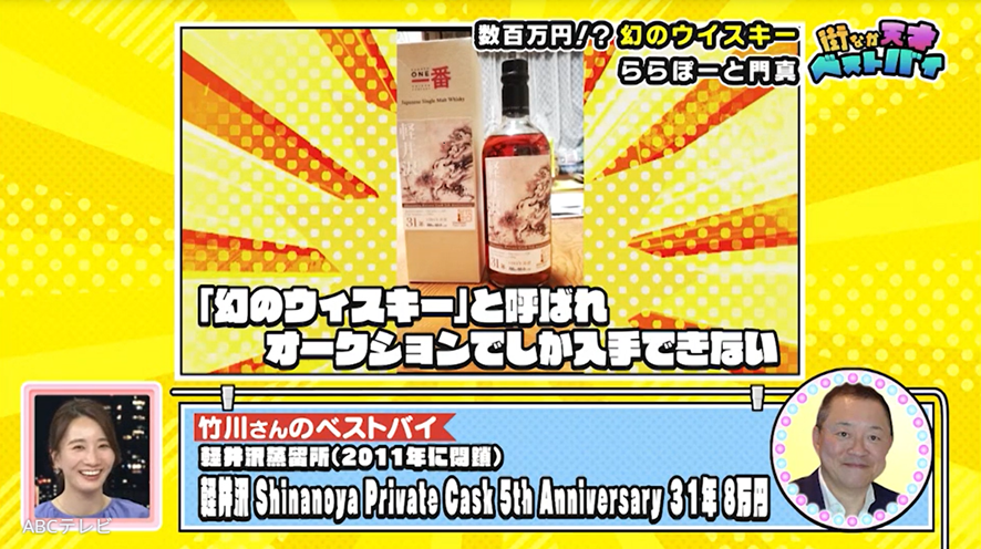 ご夫婦で食事中の男性のベストバイは、2011年に閉業した軽井沢蒸留所のウイスキー。軽井沢蒸留所の商品は、閉業後に世界的に評価され、現在では「幻のウイスキー」と呼ばれています。この幻のウイスキーを、男性は15年前に約8万円で購入。現在ではオークションでしか手に入らないらしく、「どんどん値段上がってね、このあいだ(オークションサイトを)見たら200万円とか300万円とかになっていた」そうです!