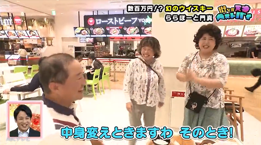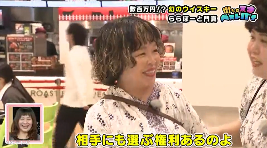 そもそも男性がウイスキーを購入した目的は、息子が結婚するときの祝杯用。その息子さんは現在35歳で、結婚の予定はいまだないのだとか。そのため独身のりえちゃんは、「嫁ぎに行かしていただきます!」「そのときみなさんでウイスキー飲みましょ!」とぐいぐいアピール! 彼女にますみは、「相手にも選ぶ権利があるのよ!」とすかさずツッコみ、男性も「中身変えときますわ、そのとき!」とジョークを飛ばし、みんなで爆笑しました。