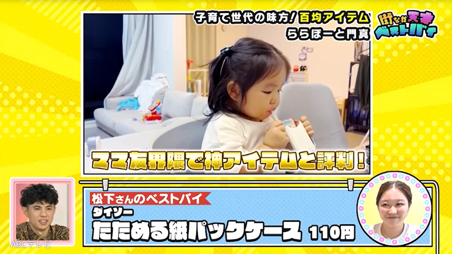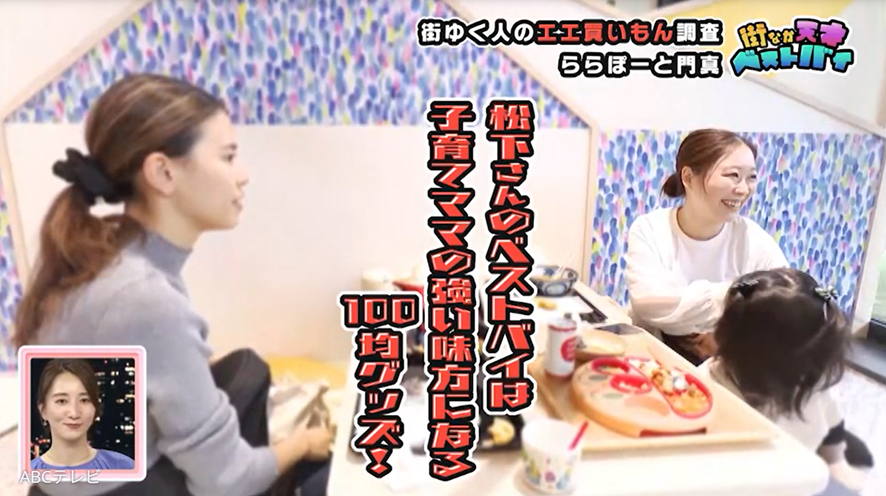 なお、ららぽーと門真・三井アウトレットパーク大阪門真にいた人々のベストバイは、情報番組『newsおかえり』(ABCテレビ、毎週月曜~金曜午後3時40分より放送)内の「街なか天才ベストバイ」10月24日放送回で紹介されました。