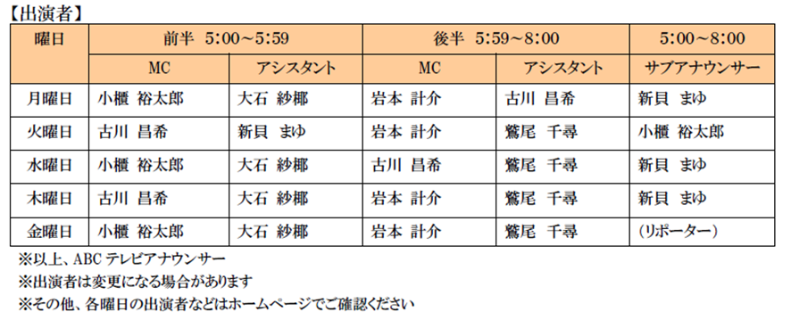 毎週 月曜~金曜 朝5時00分~8時00分(関西ローカル)