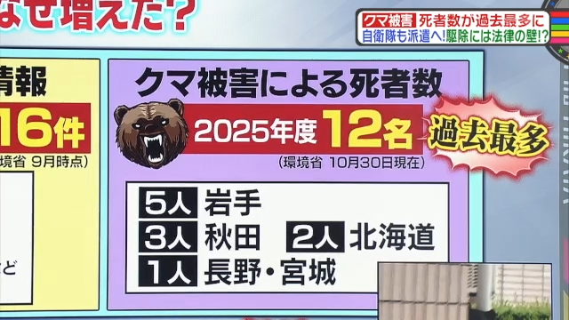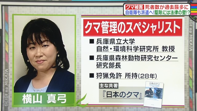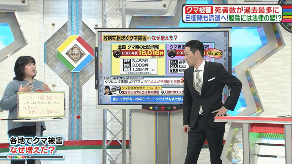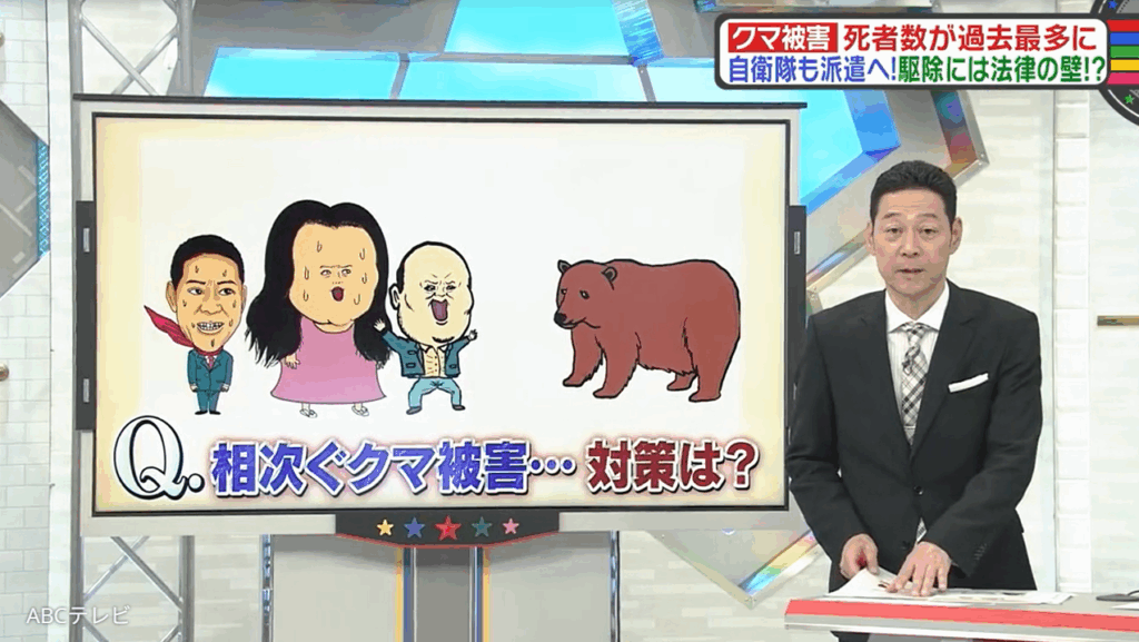 なお、クマ被害の問題は、11月1日に生放送された情報バラエティ番組『教えて!ニュースライブ 正義のミカタ』(ABCテレビ)で取り上げられた。