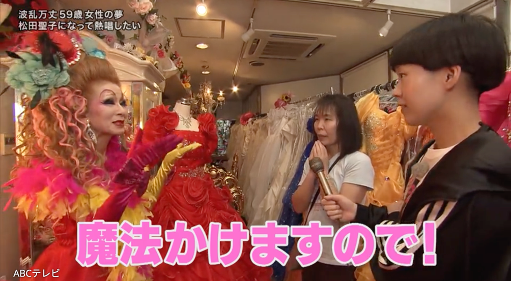 依頼内容は「80年代の聖子ちゃんヘアーで、スクールメイツを従えて、親衛隊の前で」「昭和の歌番組のように階段を下りながら、聖子ちゃんの曲を熱唱したい」と具体的だ。この願いを叶えるために、ブライダルドレスのお店を訪れた依頼人に、“心斎橋のシンデレラ姫”が魔法をかける。