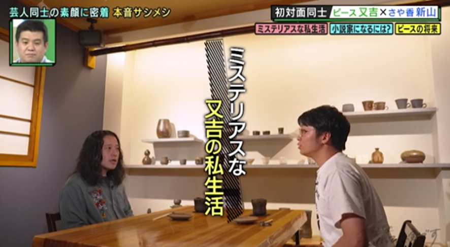 芸人同士が2人きりで食事をしながら知られざる本音を語り合う「芸人サシ飯企画」。今回は、さや香・新山がじっくり話をしてみたかったという初対面の先輩、ピース・又吉を東京・中目黒の隠れ家ビストロに誘う。