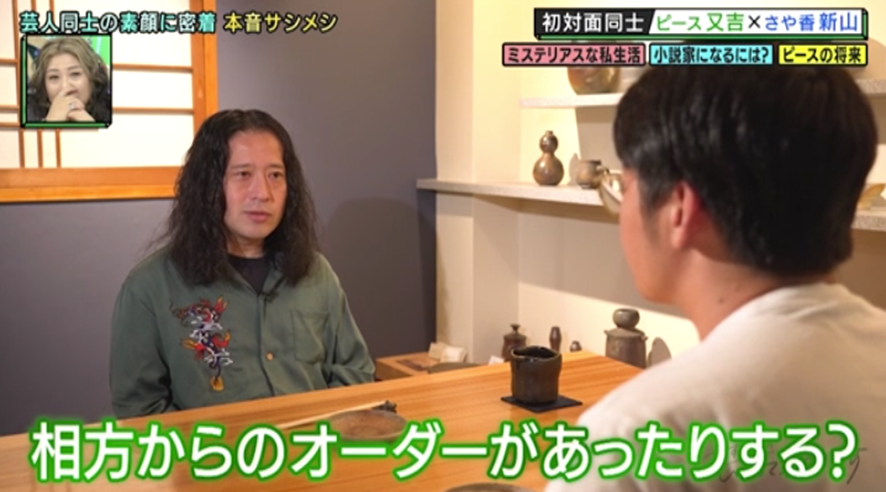 ドキドキで臨んだサシ飯では、新山が又吉の謎に満ちた頭の中に肉薄!「短編を書いたり、俳句を書いたり…」とひたすら文章と向き合う日常生活や、小説を書き続ける理由など本音を語り合う。