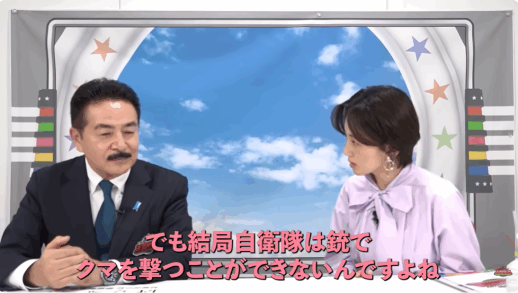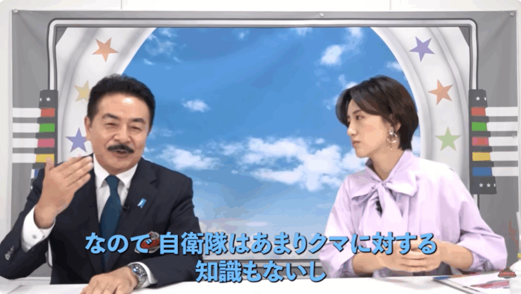 YouTubeチャンネルでも、佐藤氏は「今までクマと人間の住み分けがうまくいってたんです。なので自衛隊はあまりクマに対する知識もないし、クマに対する射撃っていう部分(の訓練)はあんまりやっていない」「元自衛官の秋田県知事は、やむにやまれず、苦渋の選択肢として自衛隊をお願いしたいと(要請した)」と現状を語る。