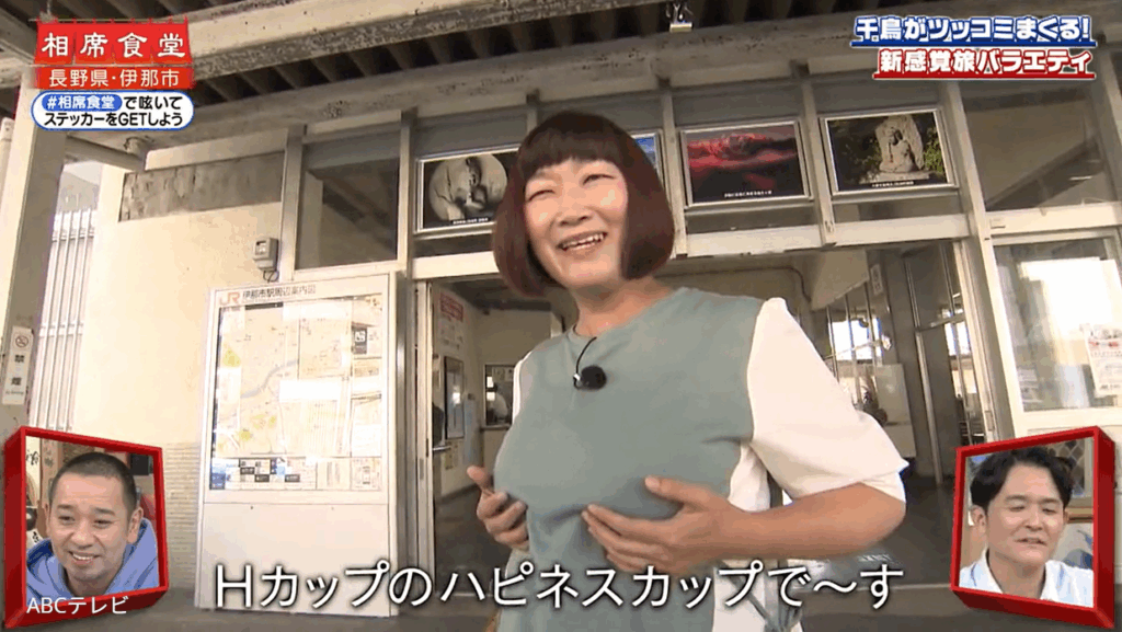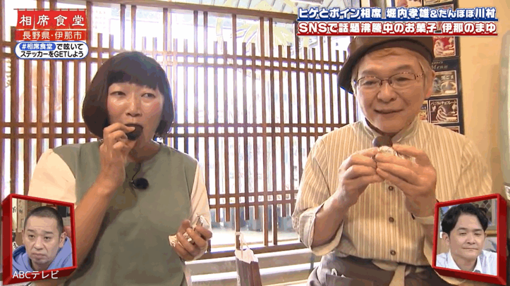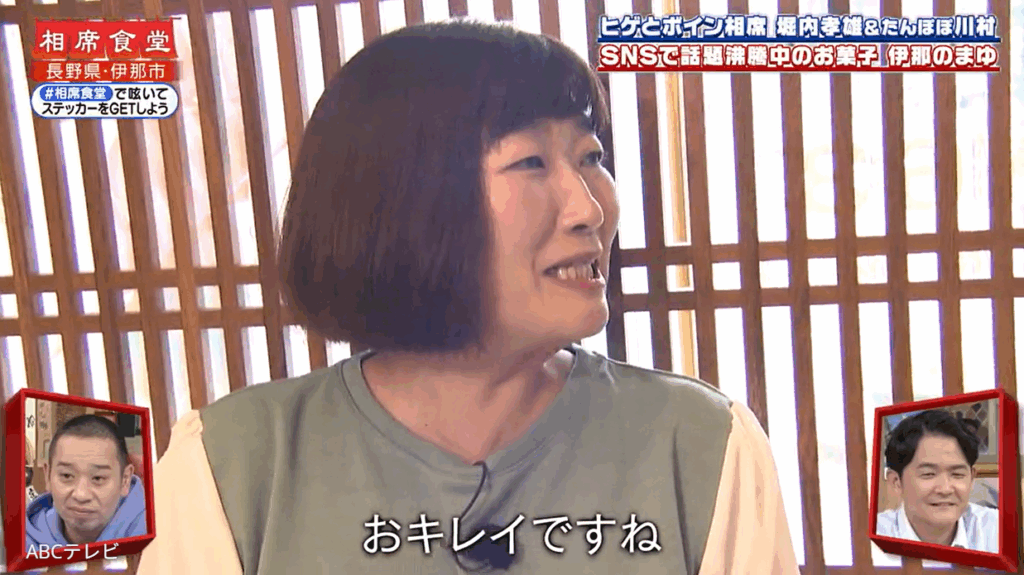 「Hカップのハピネスカップで~す!」と、たわわなバストをアピールしながら登場したのは、お笑いコンビ・たんぽぽの川村エミコだ。⻑野県伊那市を訪れた川村は、SNSで爆売れ中の洋菓子・伊那のまゆを試食。菓子店の社長夫人から、「おキレイですね」と褒められ、「やだ~急に!? ありがとうございます~明日も生きていけます~!」と喜んだ。