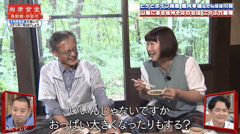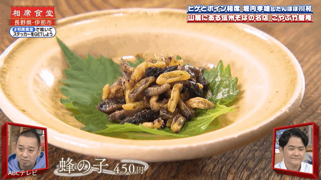 伊那市は、信州そば発祥の地と言われている。山麓にある手打ちそばの名店にやってきた川村は、高級珍味・蜂の子(蜂の幼虫)の甘露煮を、伊那市地蜂愛好会に所属する地元男性たちから勧められた。蜂の子の栄養価の高さを知った川村が、「おっぱい大きくなったりもする?」とたずねると、男性たちは「あるかもしれないですね~!」とニッコリ。一方でVTRを見守る千鳥のノブは、「もう(それ以上大きくならなくても)いいやろ!」とツッコんだ。