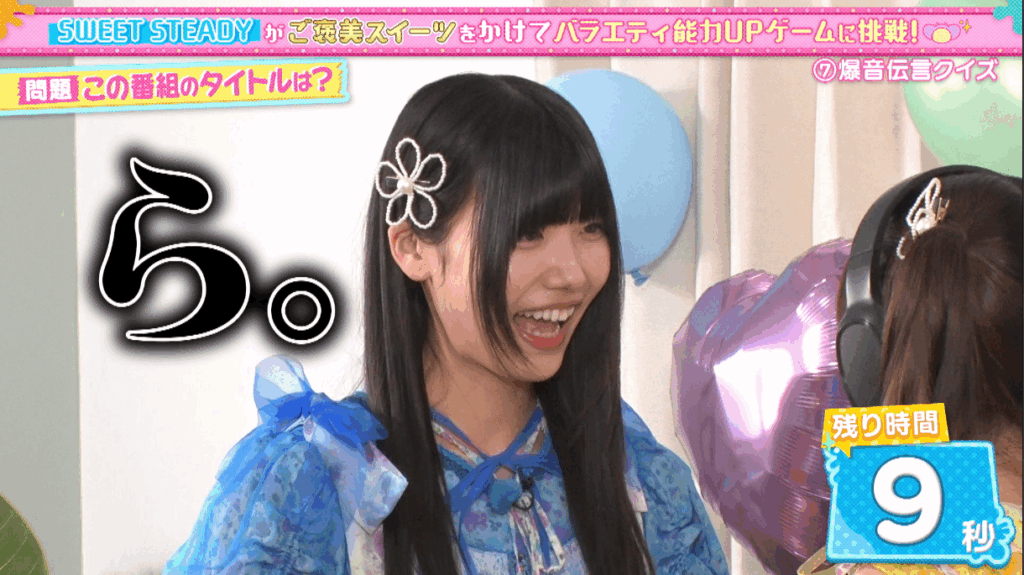 番組内でゲーム企画などに挑戦したSWEET STEADYからも3作品がノミネート。人生初のロブスターを実食した際に放った庄司なぎさの「衝撃の食リポ」、絵心クイズで山内咲奈が見せた「痛恨のミスで〇〇KAWAII」、伝言ゲームでの天然・奥田彩友による「???」が選ばれた。
