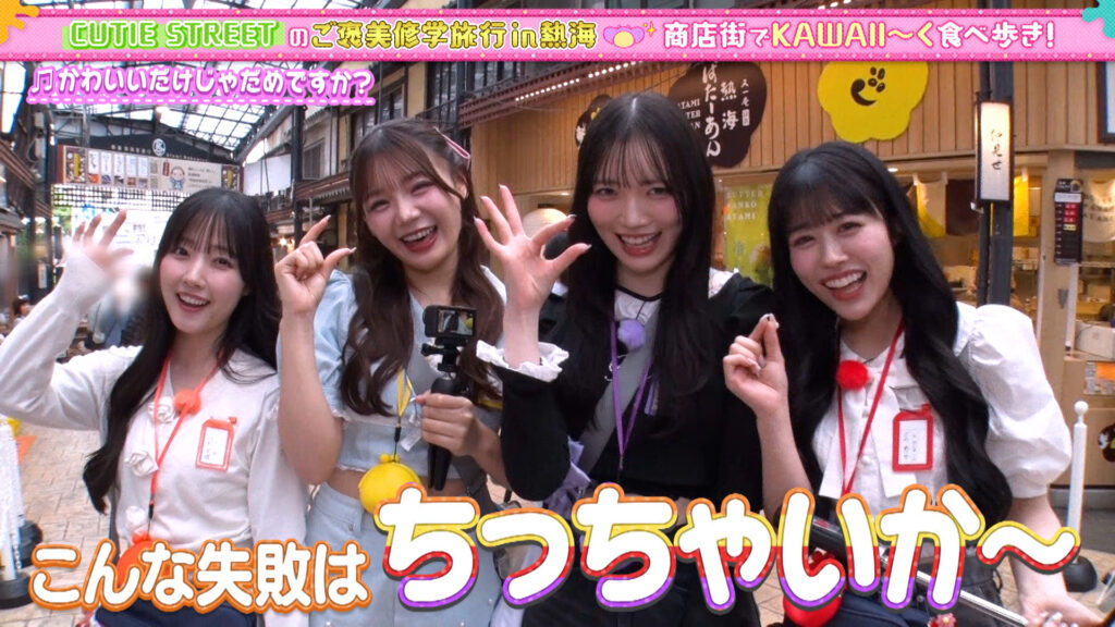 修学旅行企画が話題となったCUTIE STREETからは3作品がノミネート。熱海の商店街でメンバーが見せた「スイーツが欲しすぎて…」、絶景スポットでの佐野愛花による「〇〇KAWAII 1枚」、離島で「○○なくして意気消沈」する桜庭遥花の珍事が選ばれた。