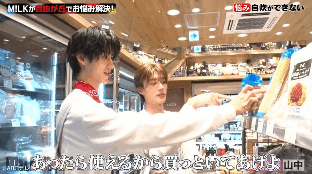 そこでM!LKメンバー3人は女子大生たちに、「じゃあ食材をお届けしますよ」「僕らがパッて買って、『これを作ってください』というのはどうですか? それをきっかけに料理を好きになってくれれば」と提案。女子大生たちに快諾されたM!LKメンバーは、早速近くのスーパーへ向かった。
