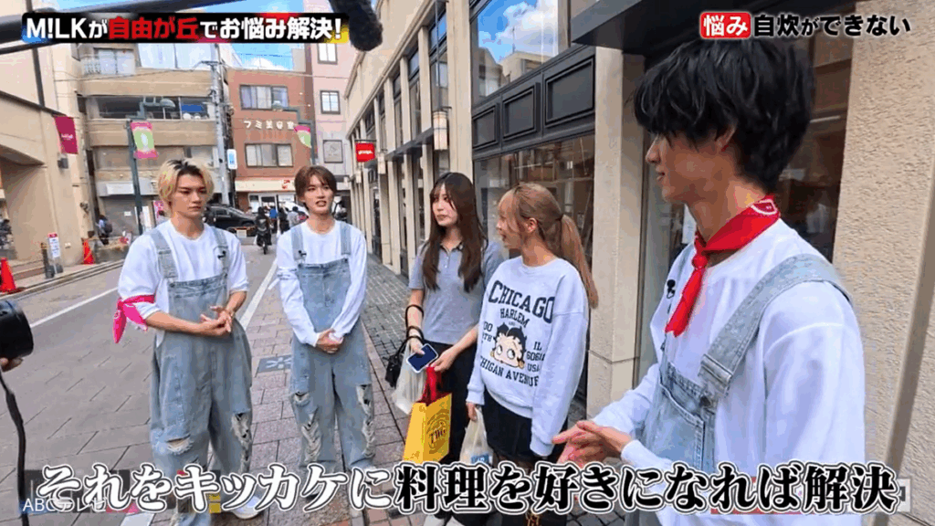 なお、M!LKのミルクイーツVTRは、11月4日深夜に放送されたM!LKのABCテレビ初冠番組『M!LKじゃん!』で公開された。同放送回でメンバー5人は、自由が丘で困っている人々の悩みを解決すべく奮闘した。