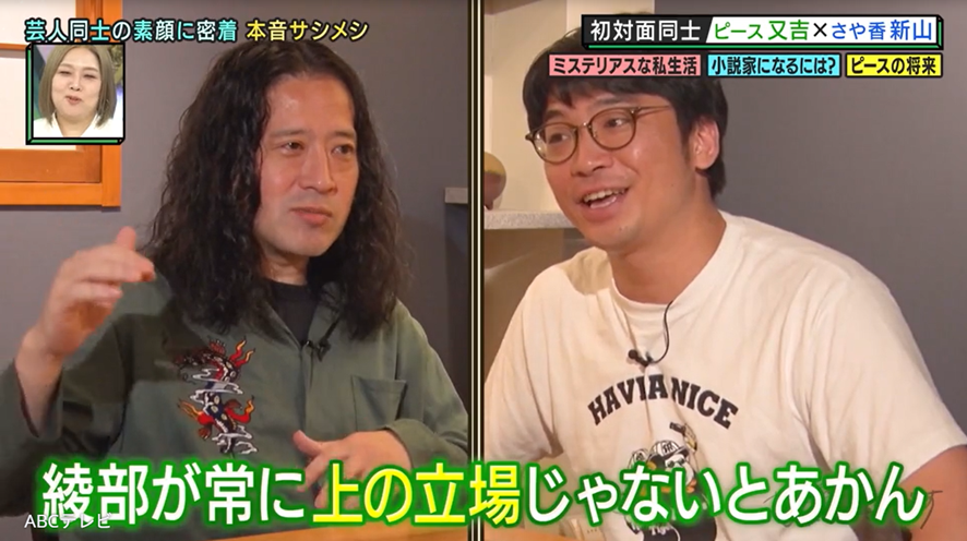 また、綾部は過去に又吉へ、「お前は芥川賞をとったけど、芥川賞をとったやつなんか歴史上100人以上おる。だけど、歴史上芥川賞の相方は俺が初めてや」と言ったのだとか。このエピソードにスタジオ一同は、「なんでそんなことを言ったんや」「すごいマウントの取り方やな」などと大笑いした。
