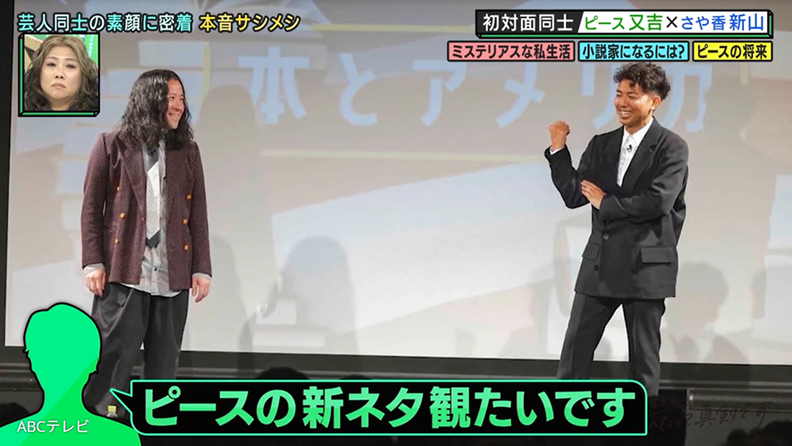 一方の又吉は、「こんだけ時間空いてじゃあコントやろつっても、なかなかなぁ」「(やるにしても)俺の立場が下のネタしか(綾部は)やってくれへんし」と苦笑い。ファンから、「ピースでライブをやってください」「ピースの新ネタ見たいです」と期待されているが、「権限を俺が持ってない」「綾部がリーダーみたいな感じやからなかなか難しい」と又吉は困り顔でコメント。しかし最後には、「まあ、いつかやりたいけどね」と本音を明かした。