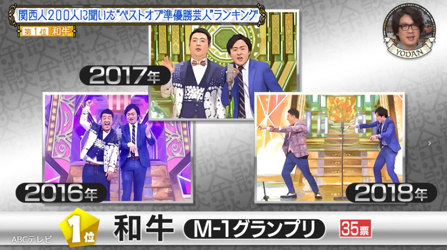 第1位に輝いたのは、M-1グランプリ2016・2017・2018と3年連続で準優勝の和牛。関西人たちは「構成のレベルが高くて、面白いだけじゃなくて上手い」「伏線回収の仕方が凄い」「毎年毎年すべてのネタが面白くて」とその漫才を絶賛。「霜降り明星が優勝した時の和牛。あの年はレベル高かった」という意見や、「すごく面白いのになかなか優勝できひん」「1番面白いと思っても優勝しない」と、和牛が優勝できなかったことを不思議がる声が多かった。
