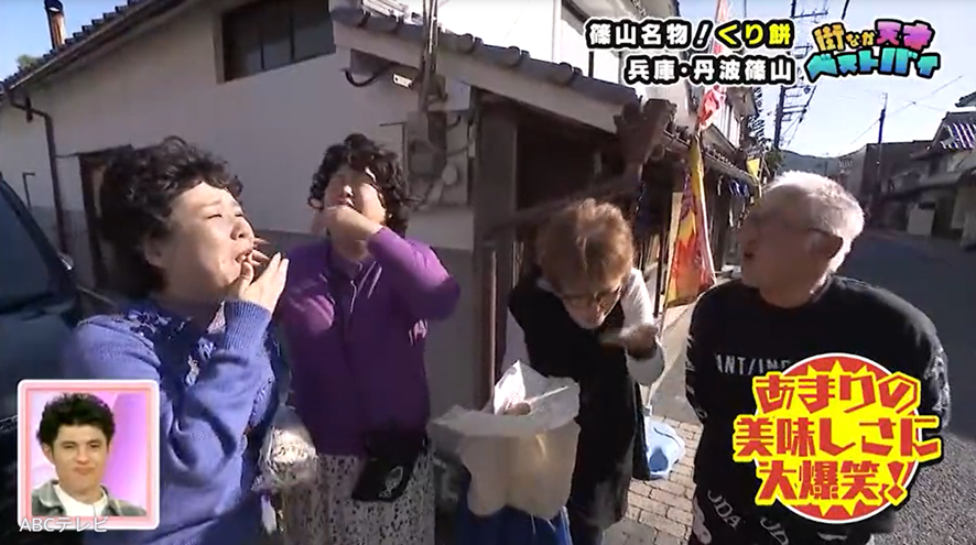「あくさや」は、250年以上続く和菓子の名店。丹波篠山ツウの女性は、くり餅の大ファンで、なんと同店に20年以上も通っているのだとか。くり餅は、丹波栗が出回る9~10月の限定販売で、午前中には売り切れてしまうことも多いのだそう。女性の夫も交えた4人は、そんなくり餅のあまりのおいしさにコメントできず、笑いが止まりませんでした!