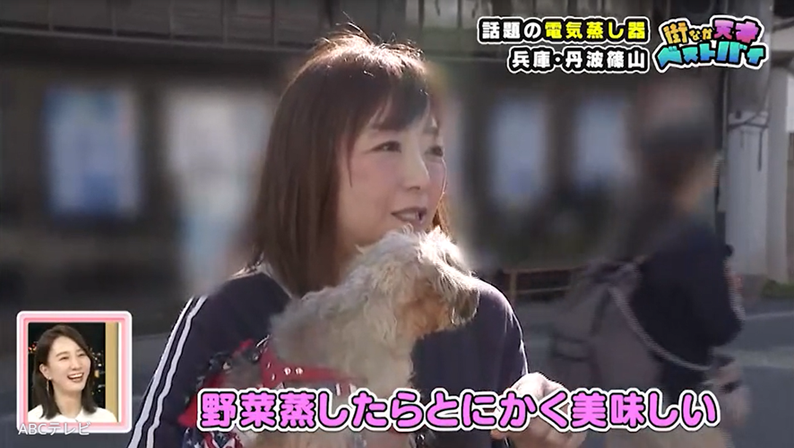 天才ピアニストが最初にインタビューしたのは、丹波篠山産の枝豆を毎年求めて神戸から訪れている女性。食にこだわる女性のベストバイは、ほったらかし調理で本格せいろ蒸し料理ができる、電気蒸し器O’MUSU(オムス)です。彼女いわく、「野菜を蒸したらとにかくおいしいし、モヤシの上に豚肉をのせるとか」がおすすめなのだそう。後程ゲットした枝豆もO’MUSUで蒸して味わったそうです!