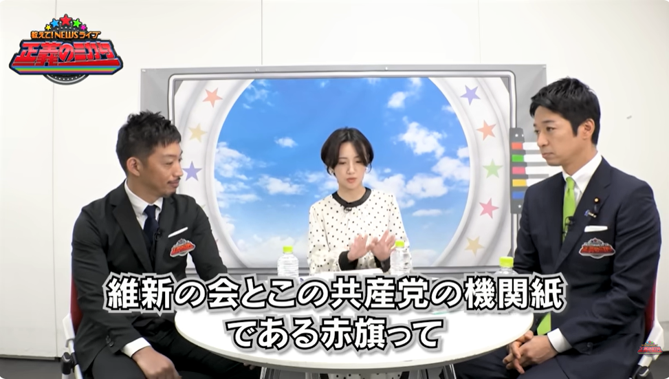 「維新は保守系だからですね」と言う西田氏に、藤田氏が「どうですか?西田先生。なんでですかね」と水を向けると、西田氏は「やっぱり保守系の皆さんと共産党系の皆さんっていつも戦ってらっしゃるから、やっぱり相性悪いんじゃないでしょうかね」とコメント。
