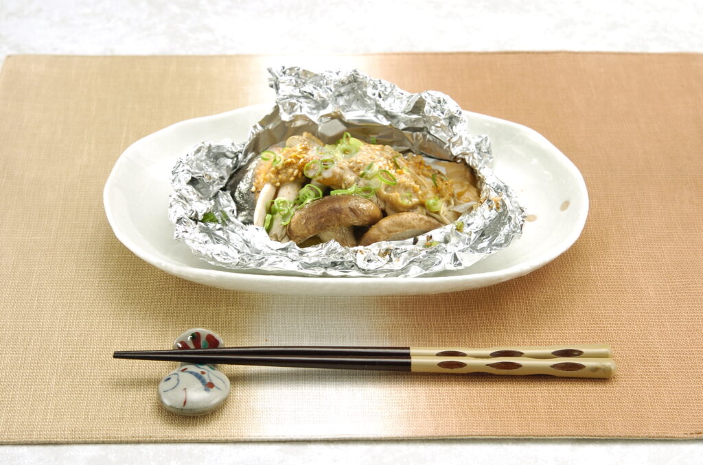 この日のテーマは「今日は鮭の日」。鮭に旬のきのこを合わせた、秋の香りいっぱいの一品「鮭ときのこのホイル焼き」を辻調理師専門学校の簾達也先生から教わった。