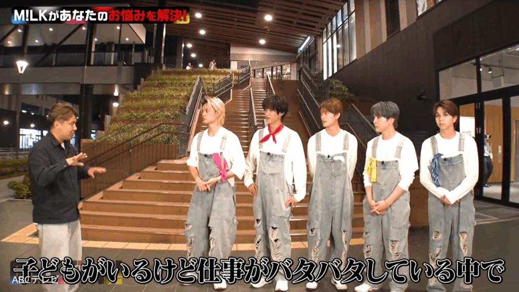 「子どもに最高の思い出を作ってほしい」とM!LKに相談したのは、M!LKのABCテレビ初冠番組『M!LKじゃん!』の男性ディレクターH氏。仕事に追われているHディレクターは、子どもたちと一緒に過ごす時間がなかなか作れないうえに、家事育児を妻に任せっきりだという。
