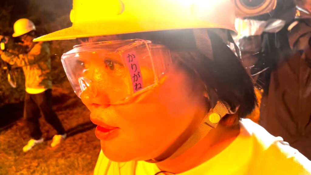「かりがね祭り」の本番は、火の粉や松明が飛び交い、大迫力! ビビりながら松明を投げ飛ばすと…!