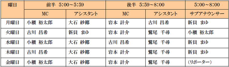 また、岩本アナウンサーの後任メインMCには、ABCテレビの古川昌希アナウンサーが就任する。